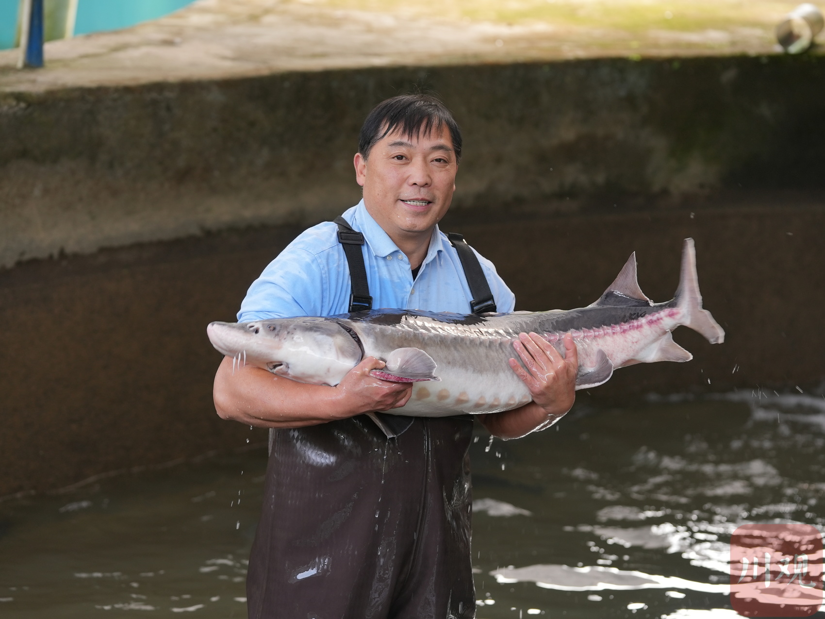冬日的陽光是騙人的,站在研究所的池邊,能感到水汽里的寒意。但為了搞清一條待產(chǎn)“孕媽媽”的狀況,周亮二話不說,穿著下水褲就踏進(jìn)了冰冷刺骨的水中。幾十斤重的長江鱘尾巴一擺,冰水瞬間潑濕了他胸前的襯衣,緊貼在皮膚上。他的動作沒有絲毫遲疑,眼神里反而溢滿了專注與溫柔。