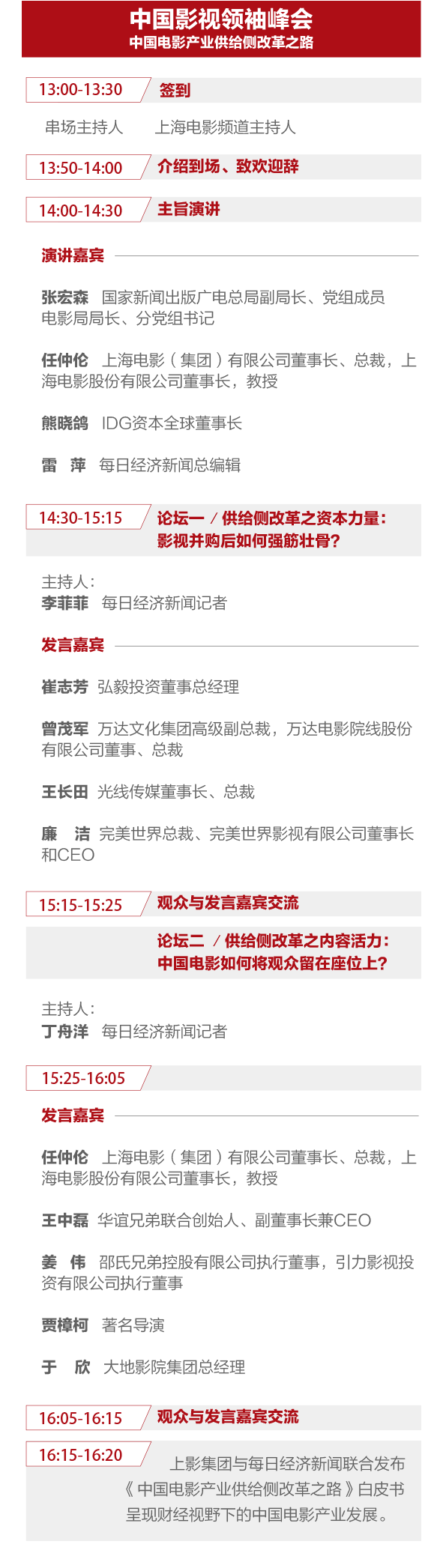 為了共同探討中國電影發(fā)展大計,減緩國內(nèi)優(yōu)質(zhì)電影供給不足和人民對電影文化消費(fèi)需求持續(xù)增長的矛盾,張宏森、任仲倫、熊曉鴿、雷萍、王中磊、曾茂軍、王長田、廉潔、崔志芳、姜偉和賈樟柯等,方向掌舵者、龍頭企業(yè)和公司、行業(yè)精英……將濟(jì)濟(jì)一堂,傳遞政策導(dǎo)向、引領(lǐng)投資風(fēng)向、把脈創(chuàng)作方向……