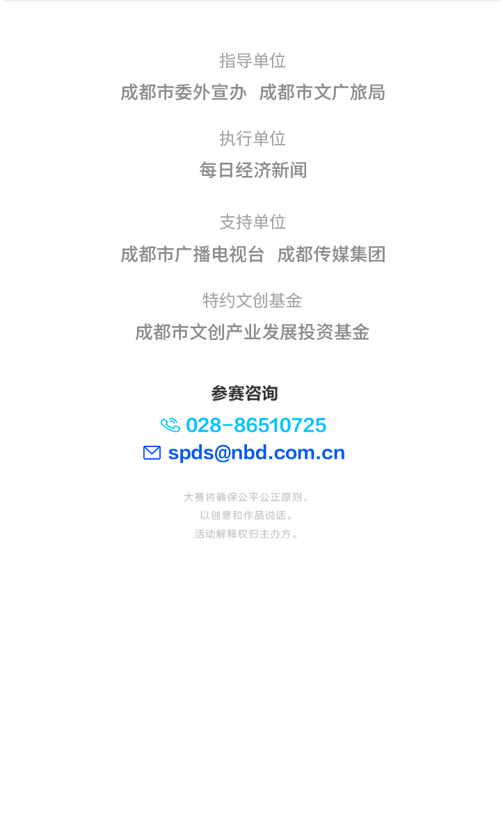 3.參賽咨詢:王女士 (028)86660288(工作日9:30-18:00) spds@nbd.com.cn