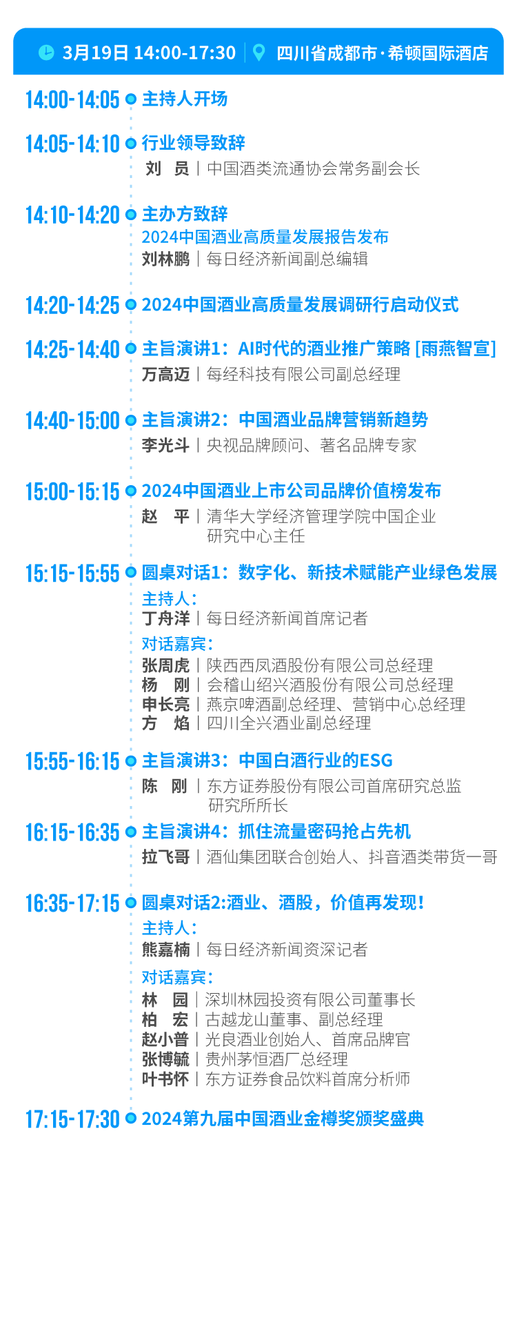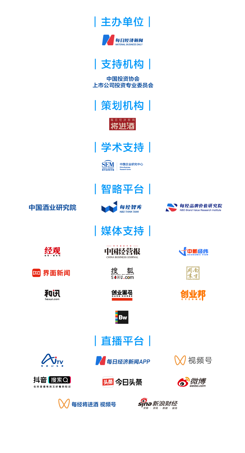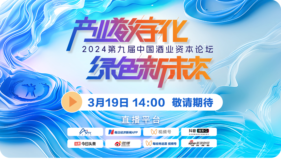 3月19日,2024第九屆中國酒業(yè)資本論壇暨中國酒業(yè)金樽獎頒獎盛典將在成都隆重舉行。論壇由每日經(jīng)濟新聞主辦,每日經(jīng)濟新聞·將進酒策劃,以“產(chǎn)業(yè)數(shù)字化,綠色新未來”為主題,廣聚龍頭酒企代表、資本大咖、業(yè)內(nèi)專家,共議產(chǎn)業(yè)數(shù)字化,勾勒綠色新未來。本屆論壇將同時頒布2024中國酒業(yè)上市公司品牌價值榜、中國酒業(yè)金樽獎,為行業(yè)發(fā)展、品牌建設(shè)提供價值參考。