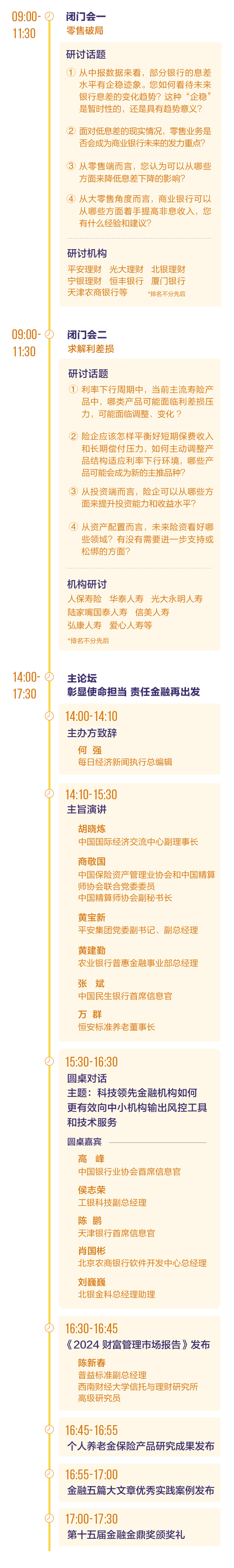 金融發(fā)展年會作為每日經(jīng)濟(jì)新聞年度重磅行業(yè)活動之一已成功舉辦14屆。2024第十五屆金融發(fā)展年會將于11月19日在北京舉行,以“彰顯使命擔(dān)當(dāng) 責(zé)任金融再出發(fā)”為主題,邀請行業(yè)協(xié)會、機(jī)構(gòu)代表、專家學(xué)者等重磅嘉賓參與,通過“金融+社會”的雙重視角,圍繞金融機(jī)構(gòu)踐行“五篇大文章”,深刻探討如何打造產(chǎn)融生態(tài)圈和社會責(zé)任共同體,實(shí)現(xiàn)可持續(xù)的中國特色金融發(fā)展之路。會上將同步揭曉第十五屆金融金鼎獎,敬請關(guān)注。